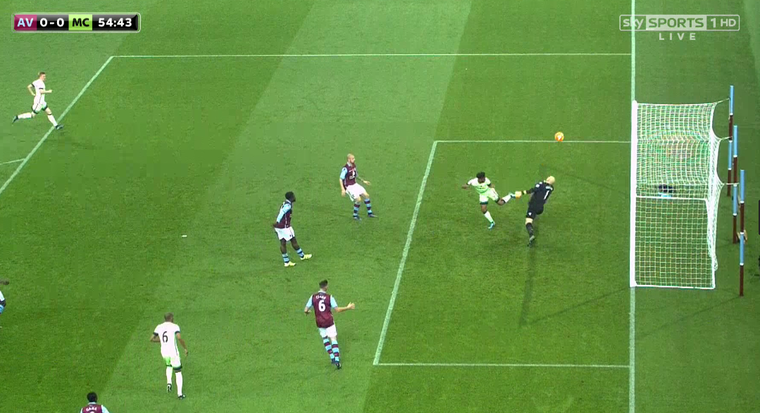 Στο 36' η Βίλα έβγαλε αντεπίθεση,με τον Ζιλ να μοναμαχεί με τον Κομπανί αλλά ο Κολάροφ επέστρεψε γρήγορα πίσω και με σωστή παρέμβαση σταμάτησε αυτή την εν'δυνάμει απειλή.Στο 37' η Σίτι ζήτησε πέναλτι στην αντεπίθεση που ακολούθησε με τον Στέρλινγκ να βγαίνει μπροστά,να αργεί ώστε να φέρει την μπάλα στο δεξί του και να υπάρχει μία minimum επαφή με τον Κλαρκ,που όμως κατά την γνώμη μου δεν είναι ικανή να τον ρίξει.Well played από τον διαιτητή.Αυτά για το πρώτο ιδιαίτερα κακό 1ο ημίχρονο.(κατοχή μπάλας:51-49 υπέρ της Βίλα,ευκαιρίες:2-2)